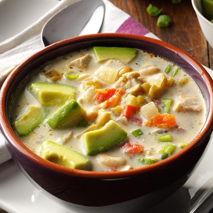 Chili is one of our best cold-weather strategies. We use chicken and white beans for a twist on the regular bowl of red. It’s soothing comfort food. —Rachel Lewis, Danville, Virginia