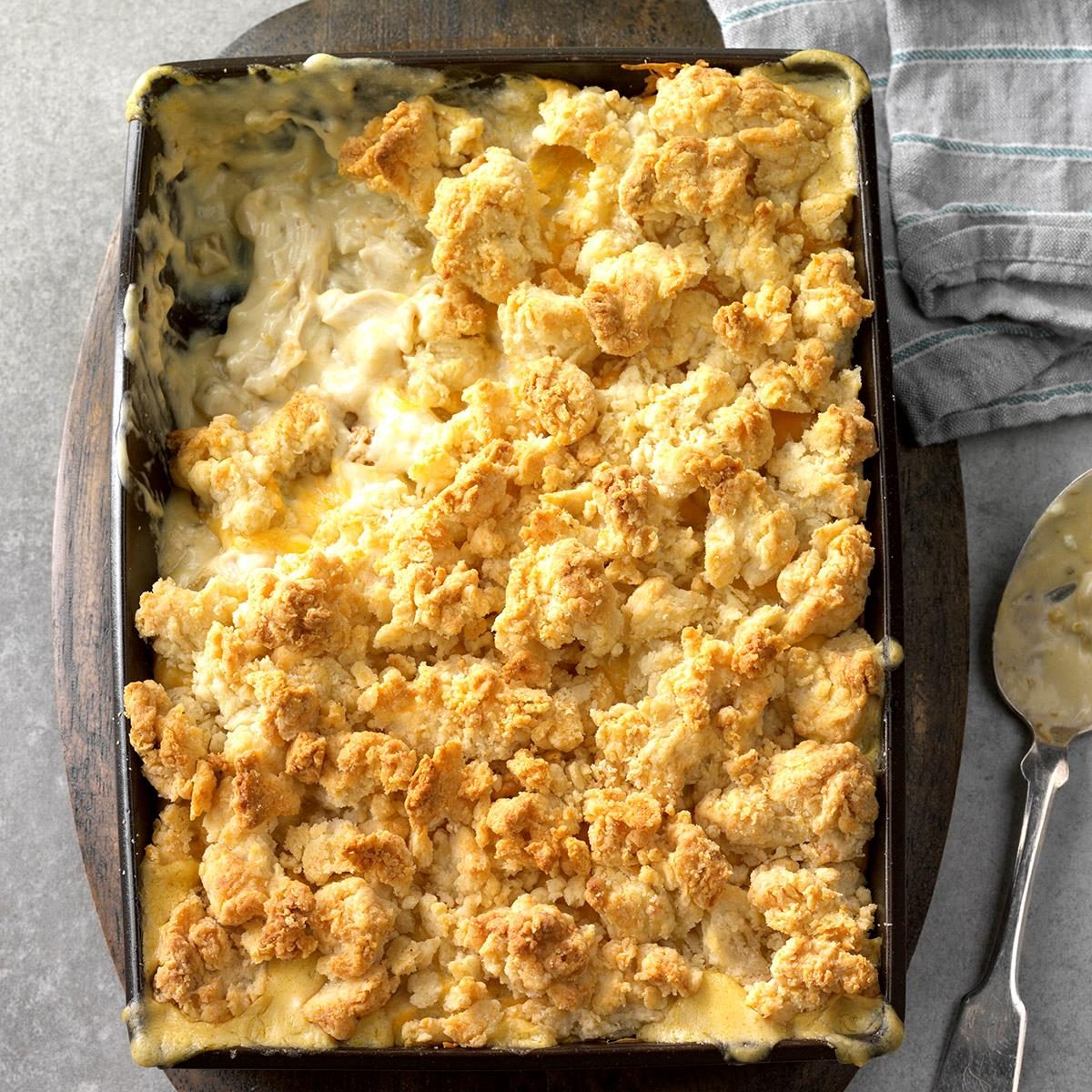 Biscuity crumbs take this family-friendly combo of rotisserie chicken and cheesy, creamy green enchilada sauce over the top. —Johnna Johnson,...