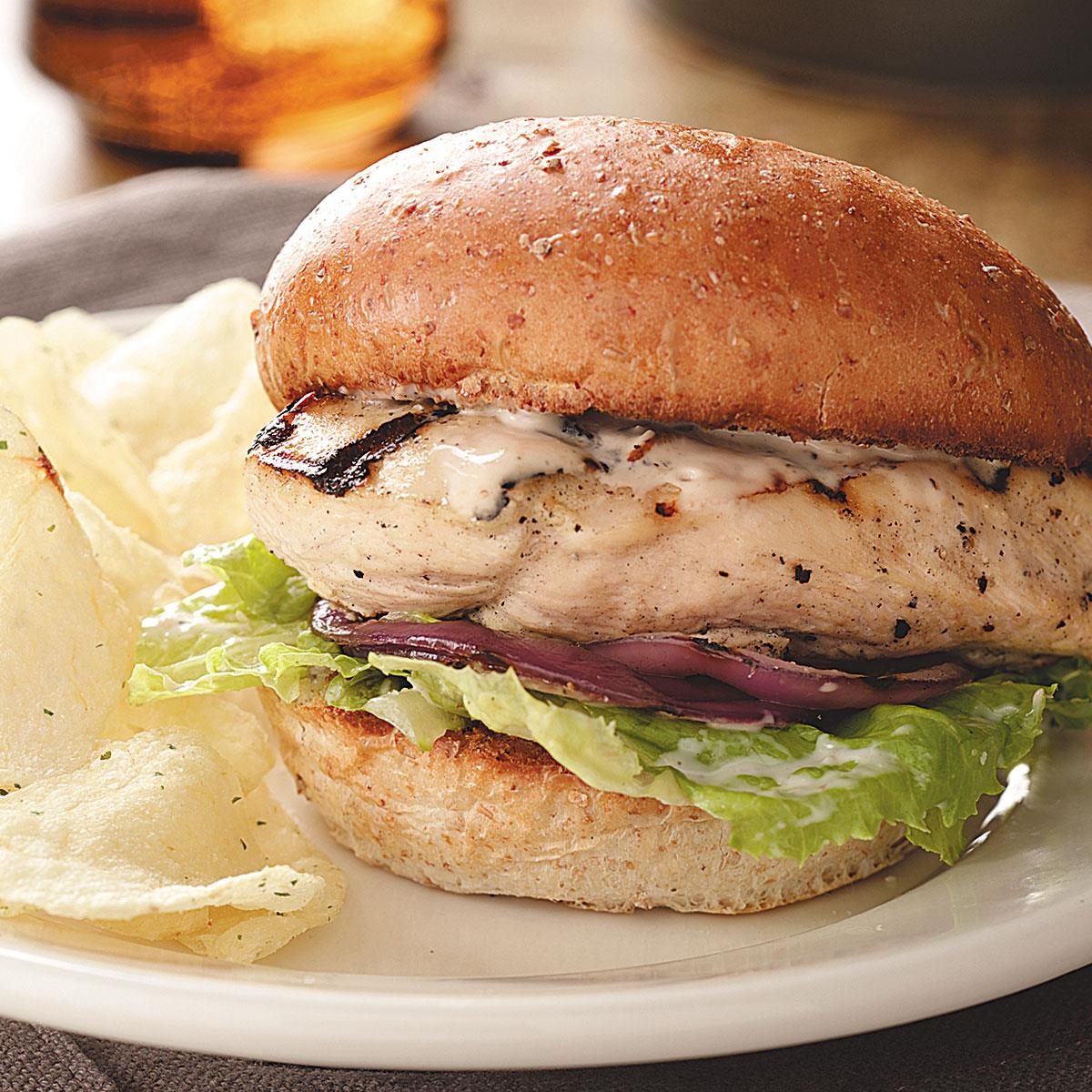 Grilled indoors, this delightful sandwich can be enjoyed any time of year. “The honey-mustard dressing gives the chicken plenty of...