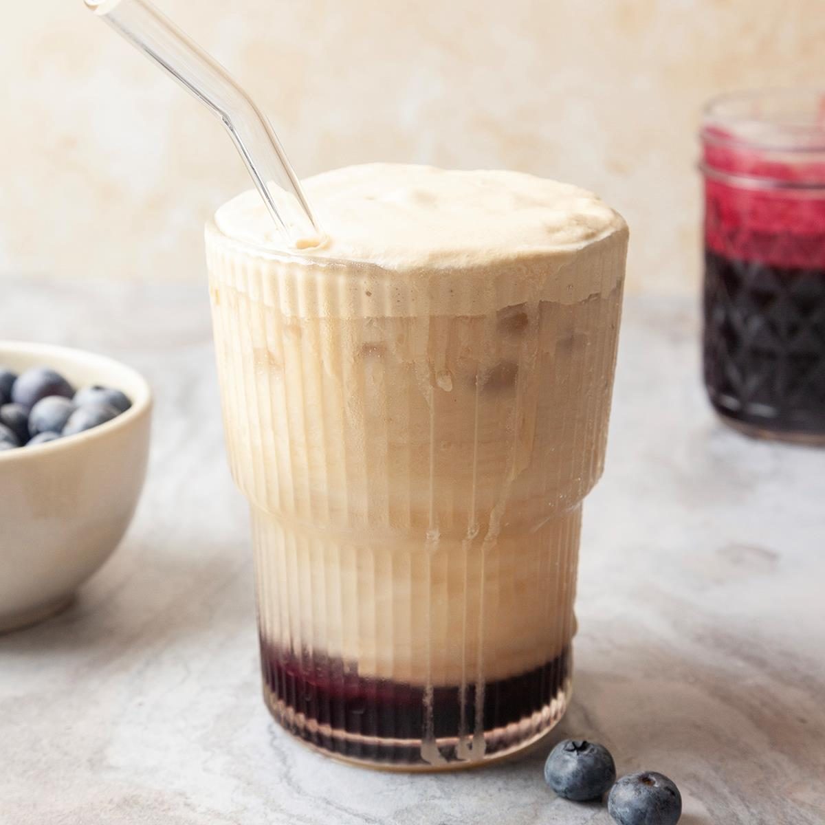 Our sweet and refreshing blueberry cloud coffee offers a fun twist on the viral recipe. Pouring fluffy cold foam over...