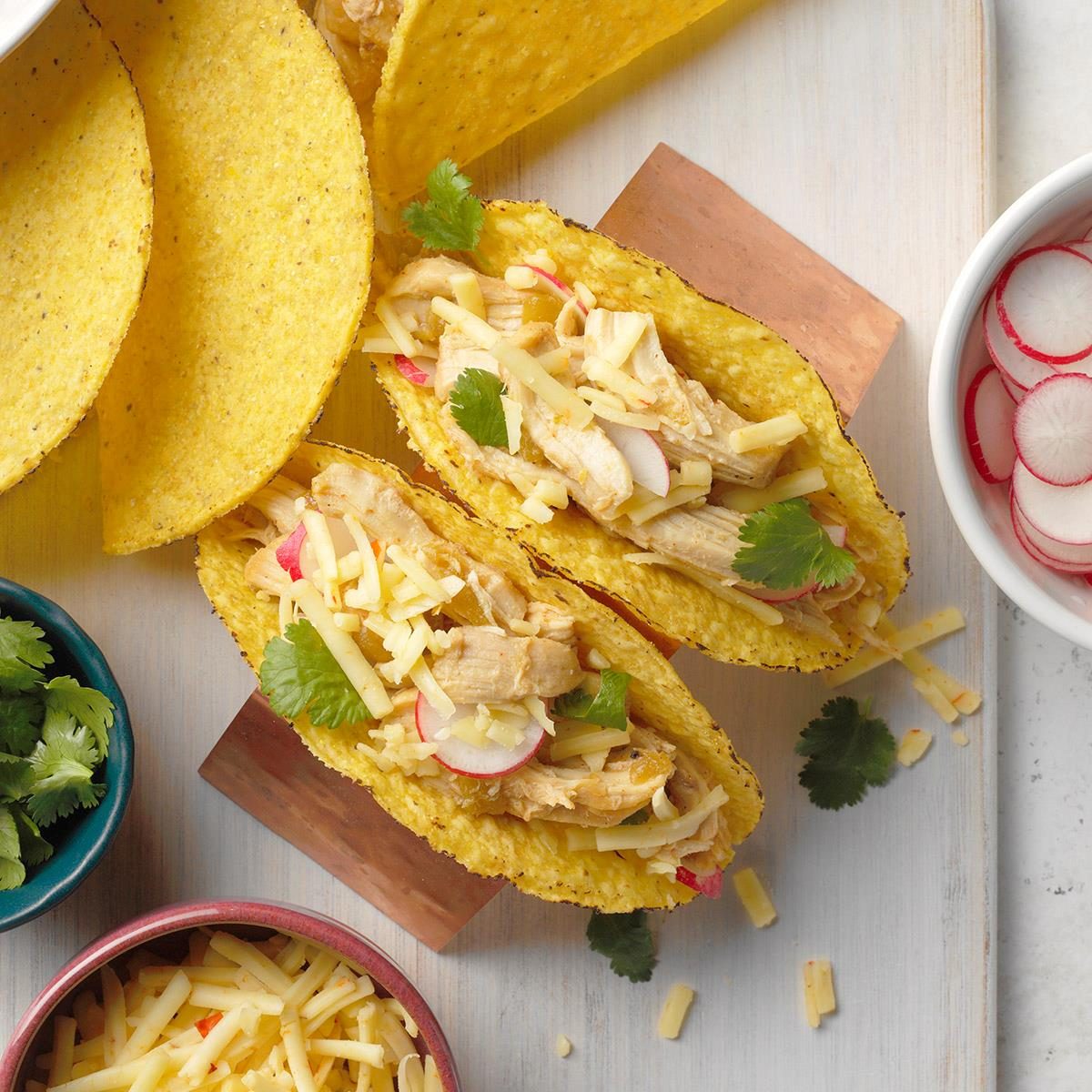 Chicken tinga tacos are packed with saucy, spicy chicken. Top them with your favorite fresh herbs, Mexican cheeses and more.