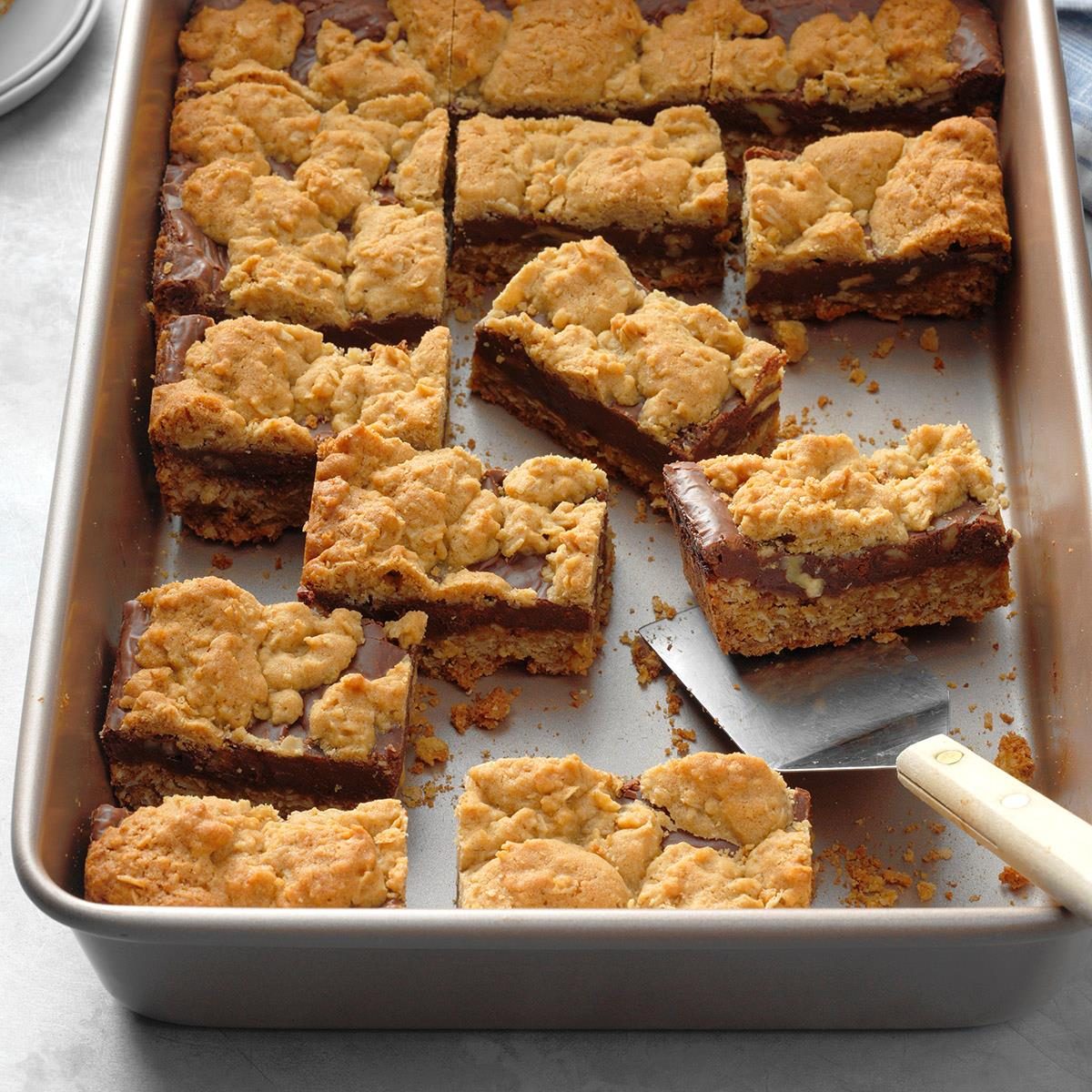 Rich chocolate, crunchy peanuts and gooey caramel peek out from between golden oat and crumb layers. Delicious!—Ardyce Piehl, Wisconsin Dells,...