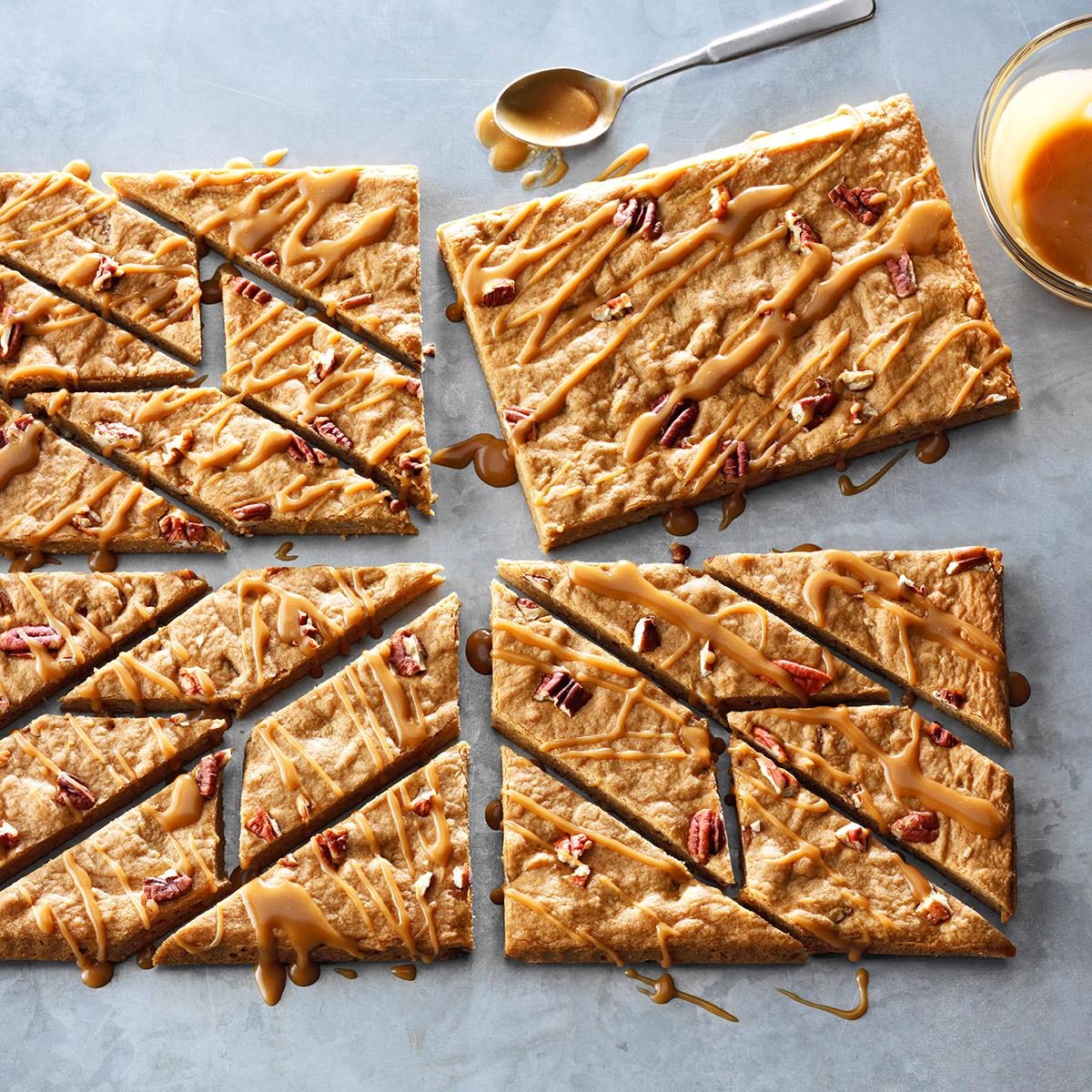 Butter Pecan Cookie Bars with Penuche Drizzle