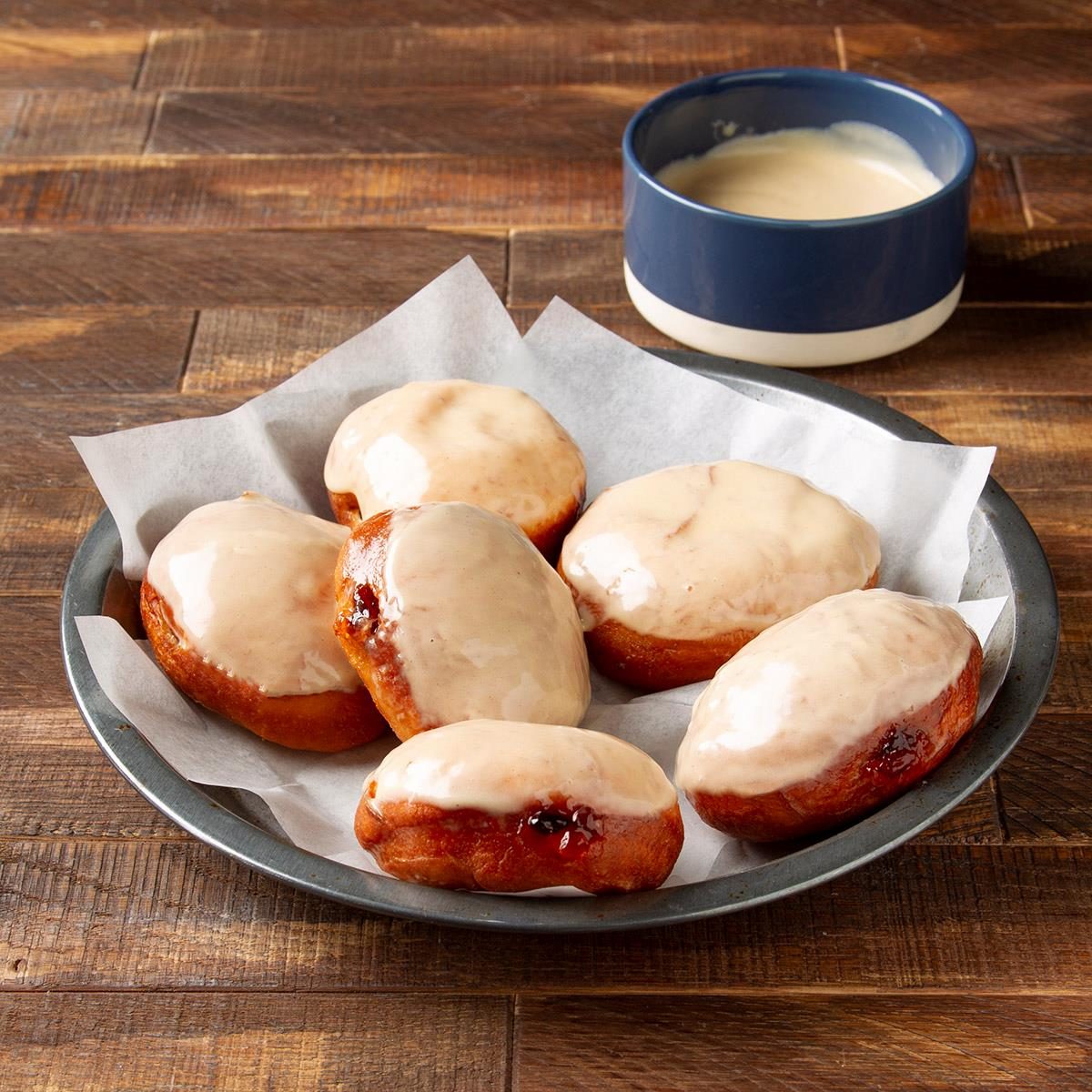 A classic jelly doughnut gets a fun twist with peanut butter glaze. No one will be able to resist these...