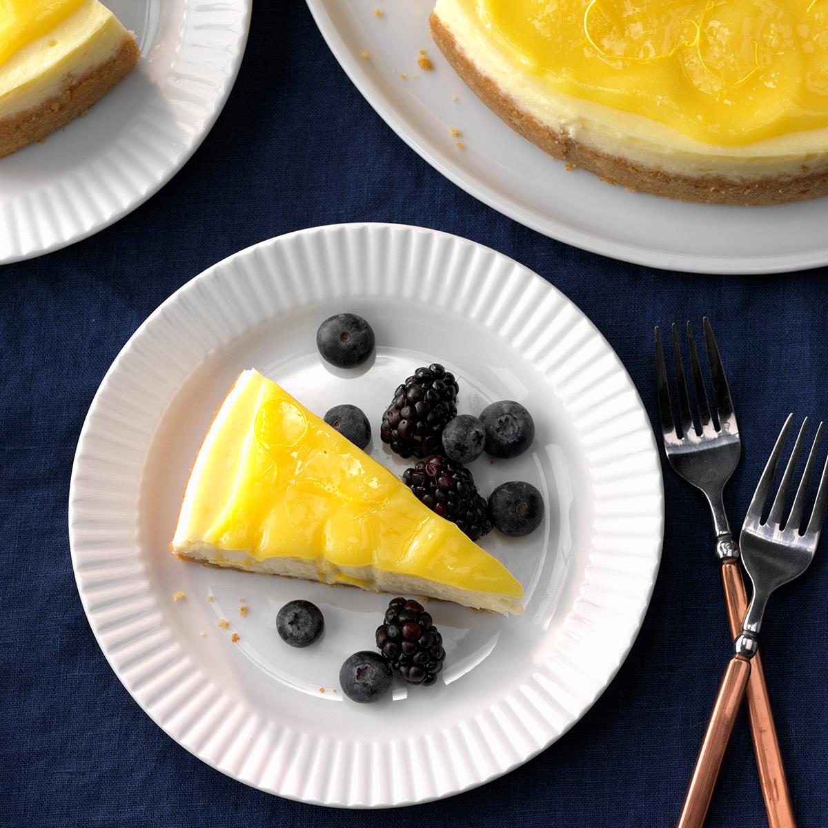 This creamy lemon cheesecake has a lovely soft texture and cuts nicely. The curd adds a fresh, tangy flavor. —Becky...