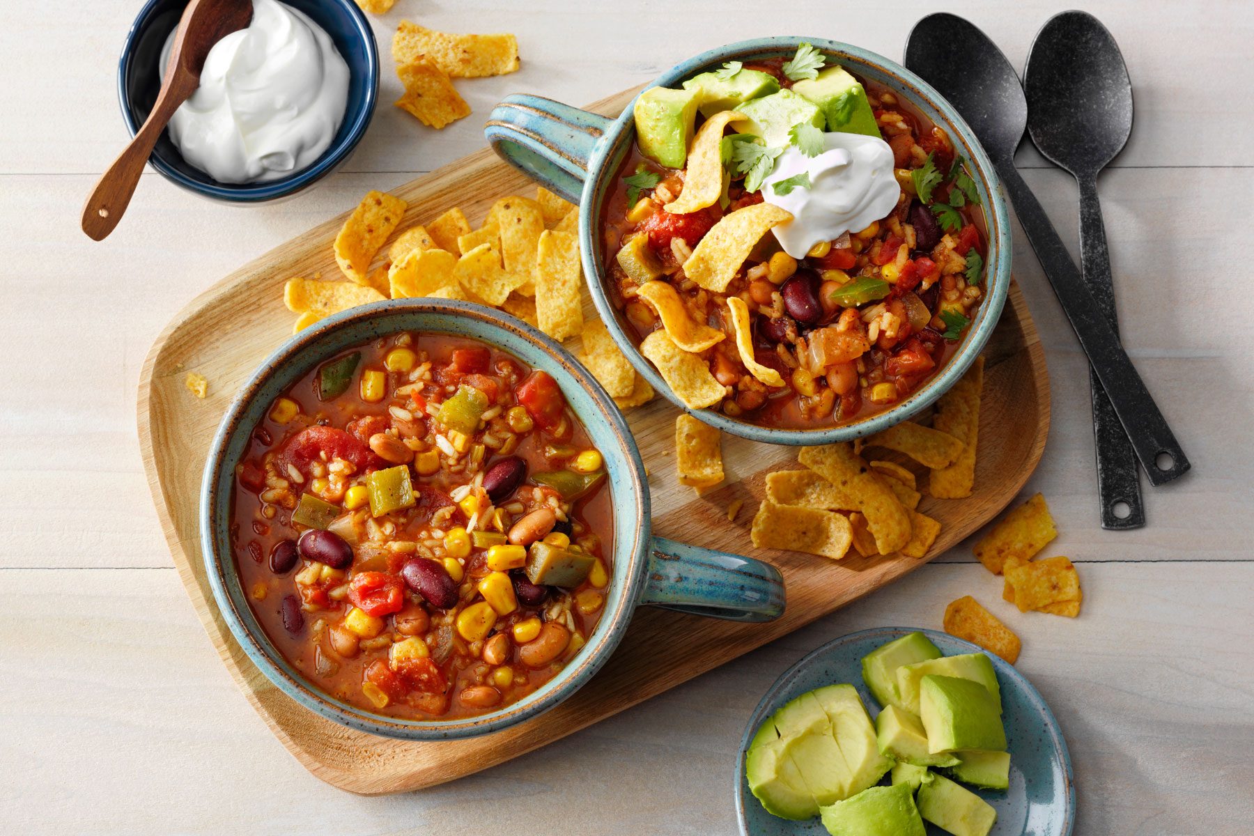 Our vegetarian chili recipe has it all: two kinds of hearty beans, chunky tomatoes, corn, chiles and lots of spices....