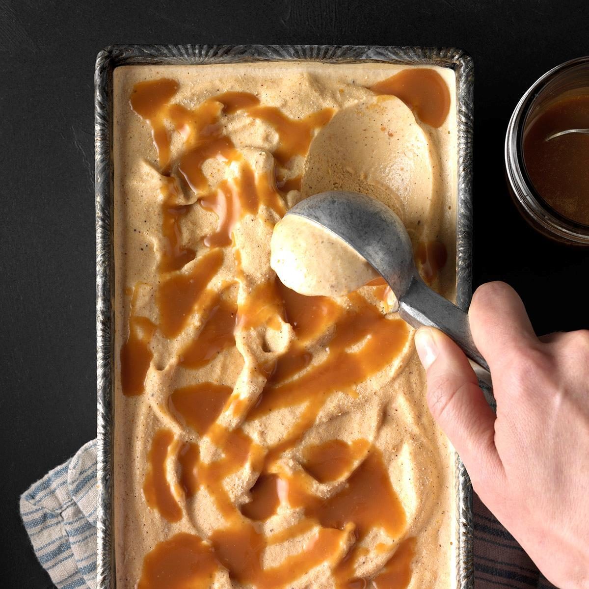 Pumpkin Pie Ice Cream with Salted Caramel Sauce