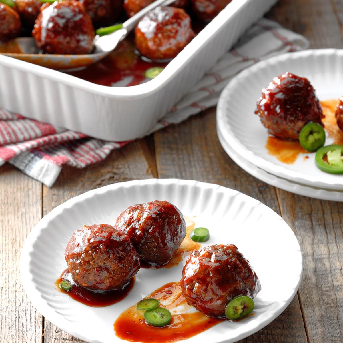 This simple meatball recipe relies on timesaving ingredients like frozen meatballs and barbecue sauce. It's the perfect last-minute appetizer! —Taste...