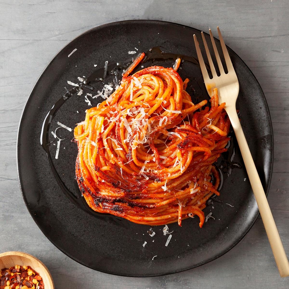 When you bite into this spaghetti, it bites back! Spaghetti all'assassina is spicy and slow-simmered in a thick chili and...