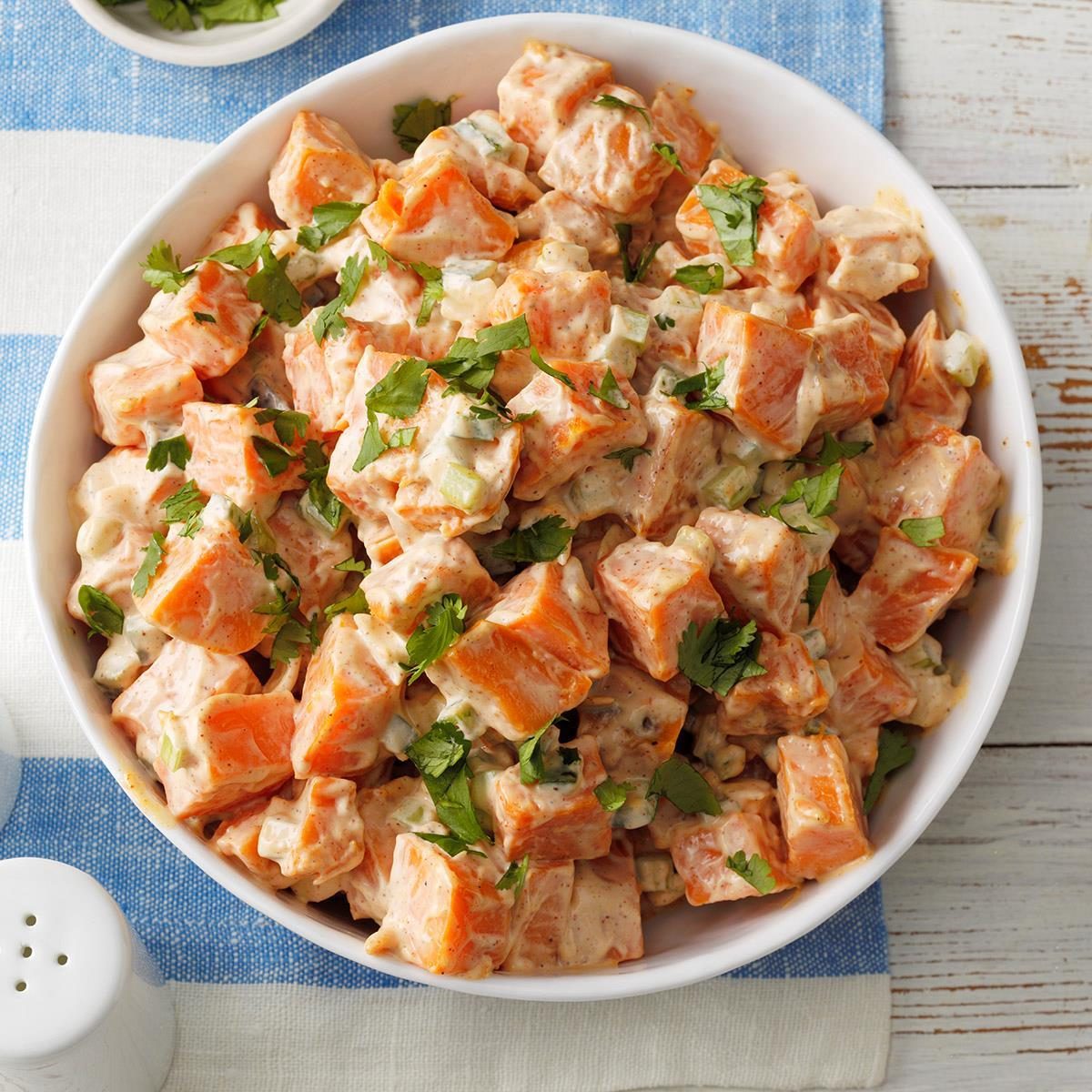 Two types of potatoes help this creamy side dish stand out at warm weather get-togethers. People love the spicy mustard...