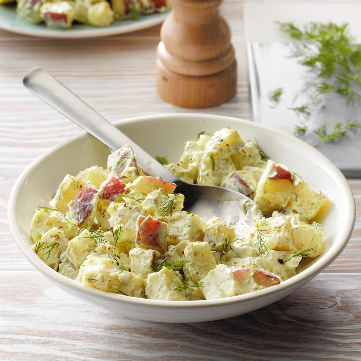 This tangy mixture is wonderful and so different from traditional potato salads. The Dijon mustard and dill spark the flavor....