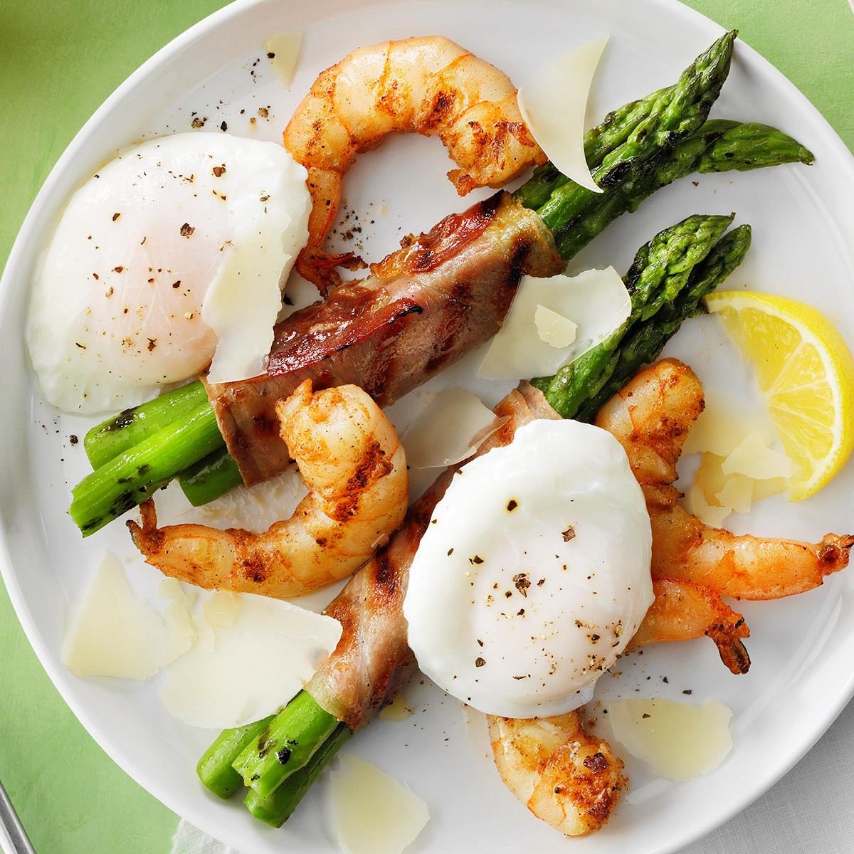 Egg-Topped Grilled Asparagus with Cajun Shrimp