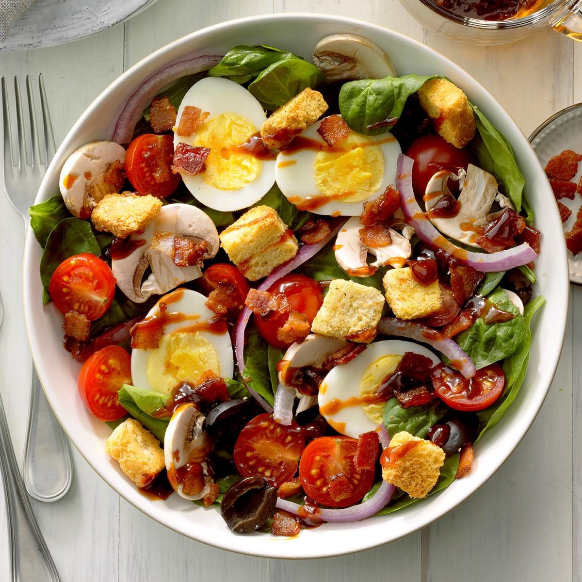 Hearty Spinach Salad with Hot Bacon Dressing