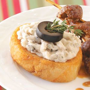 A buttery bean puree showcasing the fresh flavors of garlic and thyme tops golden slices of French bread. The versatile...