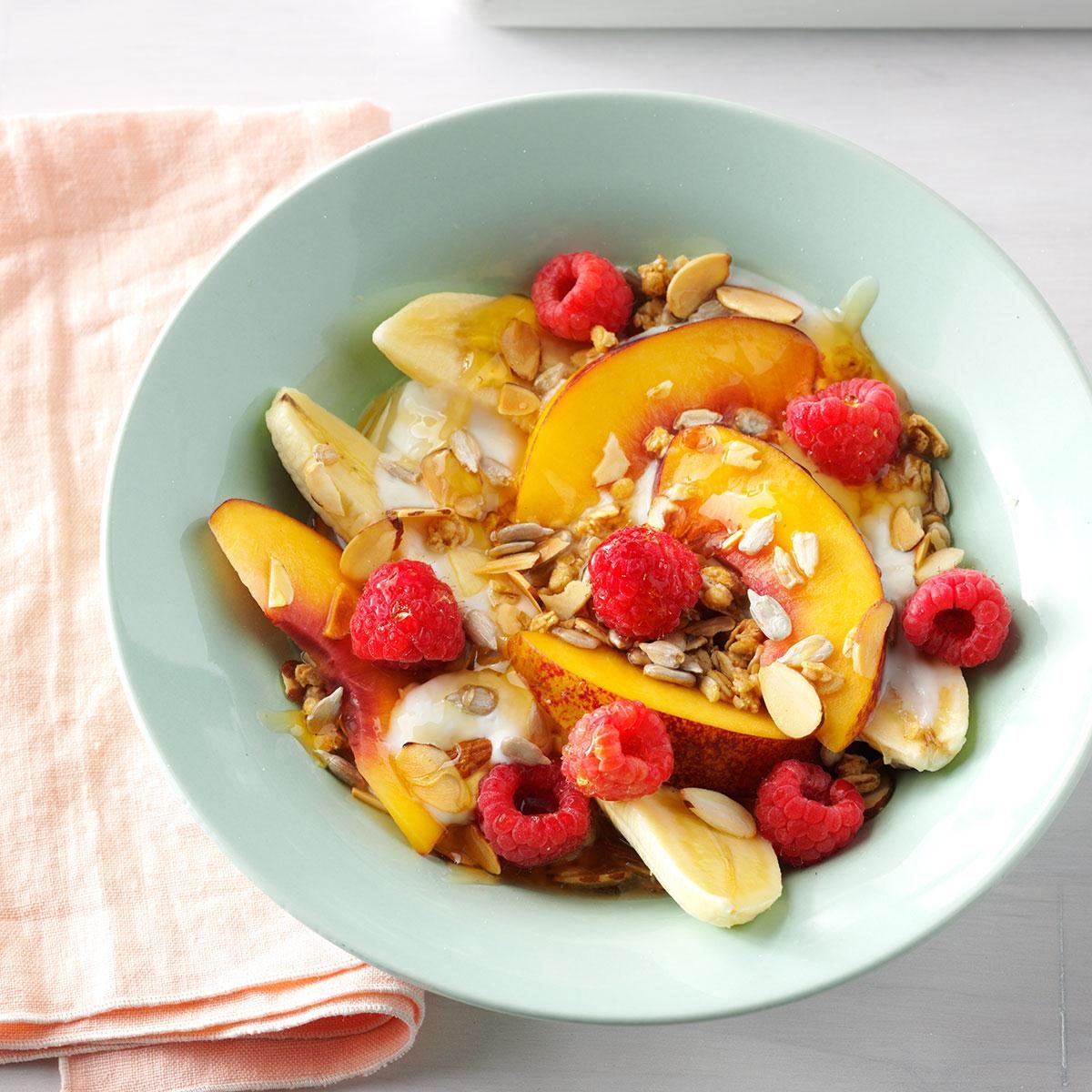 My whole family loves bananas, fruit and granola for breakfast. I topped all that with yogurt, nuts and honey and...
