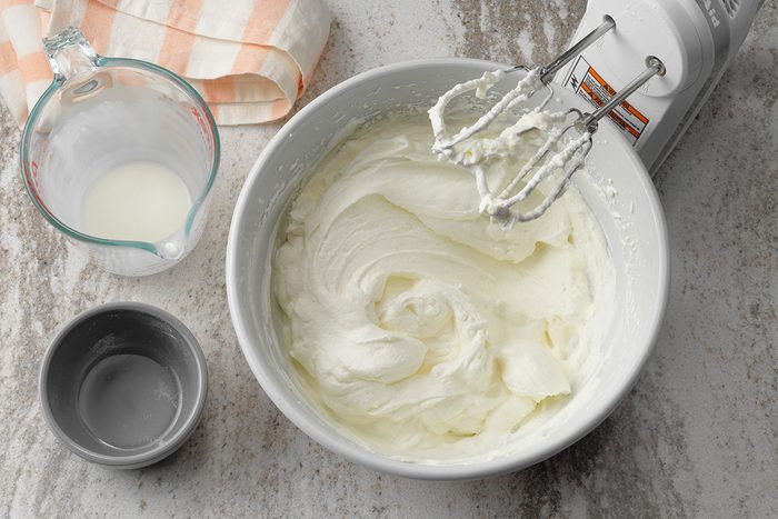 Whipped cream gives this tiramisu its velvety texture. To make whipped cream from scratch, beat the whipping cream until it begins to thicken. Then add sugar and beat until soft peaks form. You can tell the cream has reached the soft peak stage when you lift your beaters out of the bowl, flip them over and the peaks droop a bit when turned.