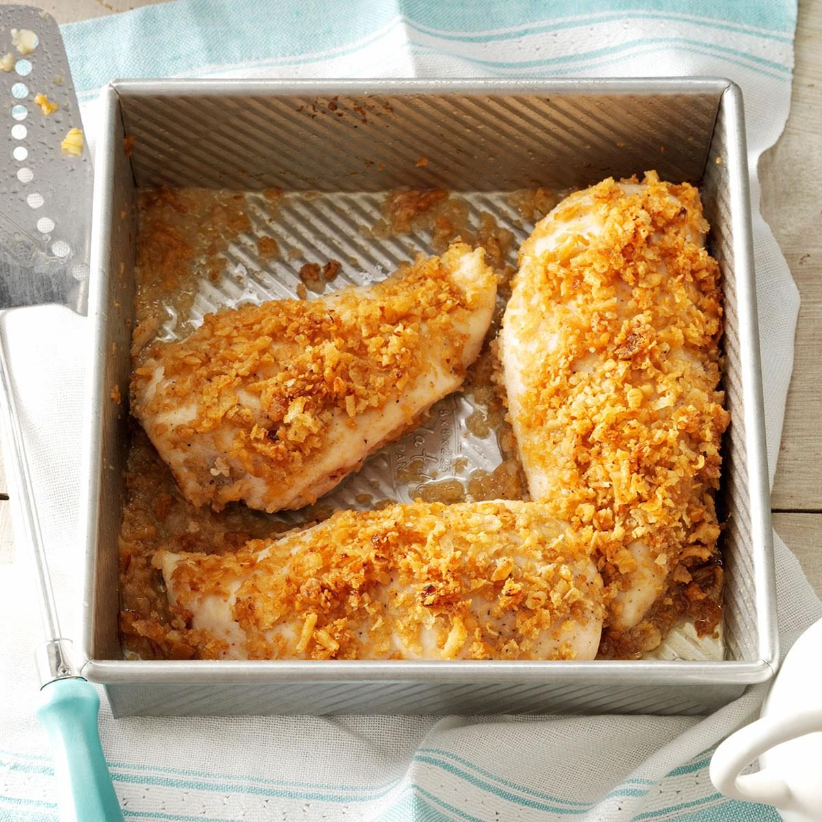 My family loves chicken, and I'm always trying new ways to prepare it. This golden-brown chicken with its crunchy french-fried...