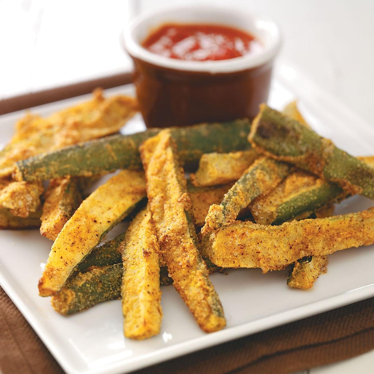 I often make these fries for my husband and myself, especially when our garden is full of zucchini. The cornmeal...