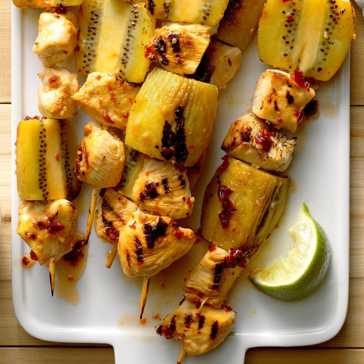 Grilled Kiwi-Chicken Kabobs with Honey-Chipotle Glaze